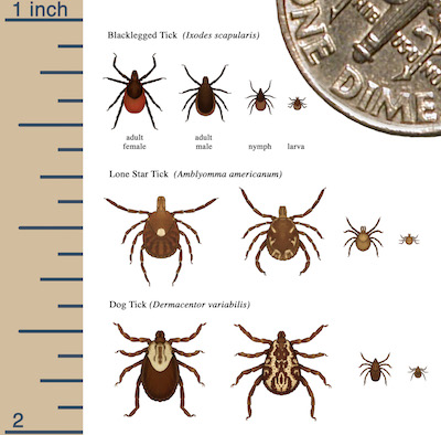Size of American dog tick in relation to other tick species found in Canada. Image courtesy of CDC.